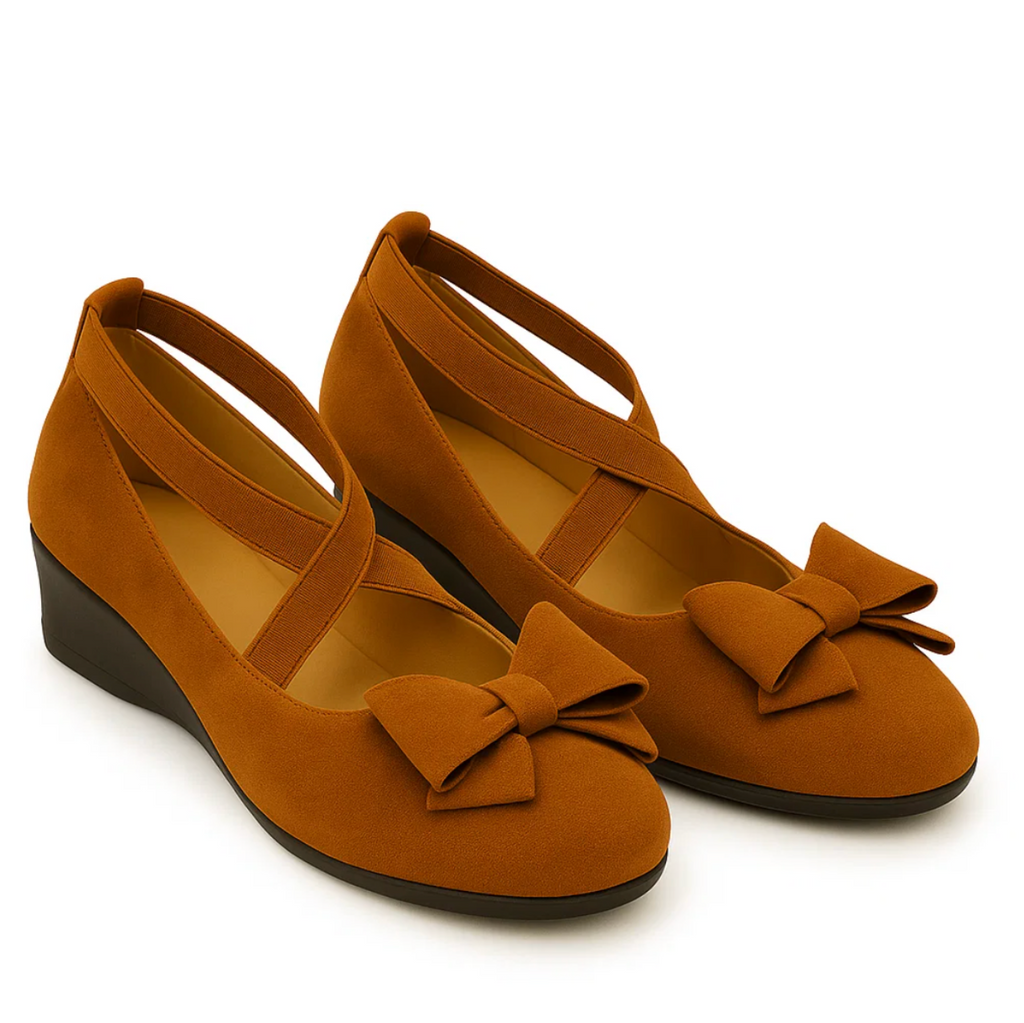 Dit zijn de Elodie Ballerina's — een verfijnde mix van elegantie, comfort en vrouwelijke charme. Deze stijlvolle instappers met subtiele sleehak en zachte suède-look stof zijn ontworpen voor vrouwen die zich moeiteloos zelfverzekerd willen voelen. De gekruiste elastische bandjes bieden extra ondersteuning en zorgen voor een perfecte pasvorm, terwijl de sierlijke strik op de voorzijde een vleugje speelsheid toevoegt. Perfect voor dagelijks gebruik, werk of een stijlvolle avondwandeling.
