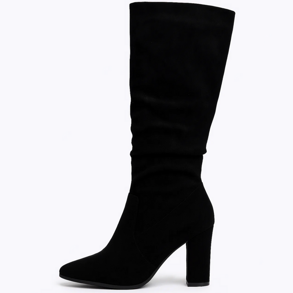 Dit zijn de Lana Suède Laarzen, stijlvolle hoge laarzen van zacht suède, ontworpen voor een elegante uitstraling en ultiem draagcomfort. Met hun trendy slouchy design en stabiele blokhak zijn ze ideaal voor zowel dagelijks gebruik als speciale gelegenheden.