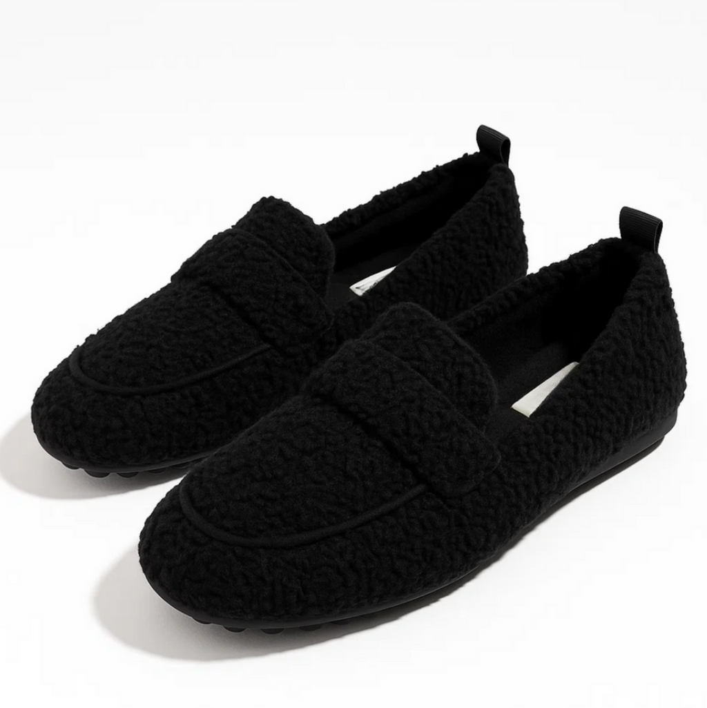 Dit zijn de Sherpa Loafers, warme en stijlvolle instappers van zachte sherpa-stof, ontworpen voor een cosy uitstraling en ultiem draagcomfort. Met hun knuffelige textuur en perfecte pasvorm zijn ze ideaal voor zowel thuis als onderweg.