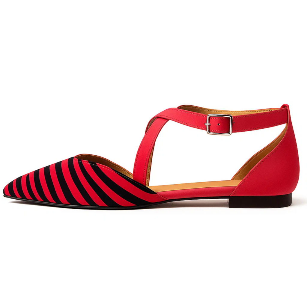 Laat je outfit spreken met de Zebra Chic Ballerina. Deze opvallende flats combineren een gedurfde zebra print met levendige fuchsia suède banden die elegant over de wreef kruisen. Het design is speels maar verfijnd, perfect voor vrouwen die graag hun stijl laten opvallen zonder in te boeten aan comfort. De spitse neus en het lage hakje geven de schoen een vrouwelijke uitstraling, ideaal voor zowel casual als semi-formele gelegenheden.